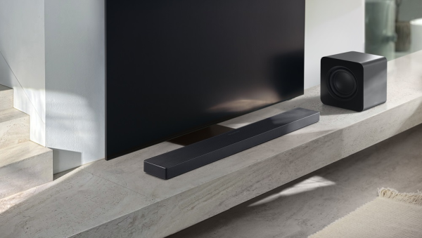 Soundbary Samsung współpracują z telewizorami marki w ramach funkcji Q‑Symphony, która łączy głośniki obu urządzeń w jeden spójny system audio. Dzięki temu scena dźwiękowa jest szersza, bardziej precyzyjna, a dialogi wyraźniejsze. Całość można obsługiwać jednym pilotem, co upraszcza korzystanie z zestawu.