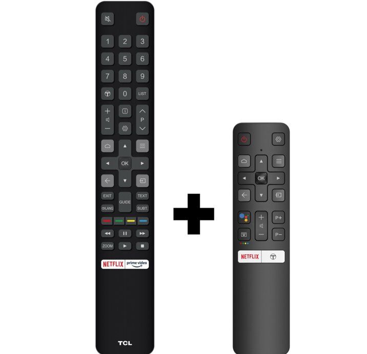W zestawie z telewizorem znajdziemy dwa piloty. Jeden to standardowy, a drugi to taki pilot Smart, czyli z najważniejszymi przyciskami, głównie do obsługi funkcji Smart TV (z wbudowanym mikrofonem do komend głosowych).