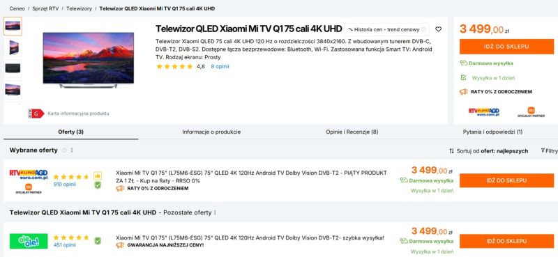 Xiaomi Mi TV Q1 75 – zobacz aktualne ceny i kup w promocji tutaj!
