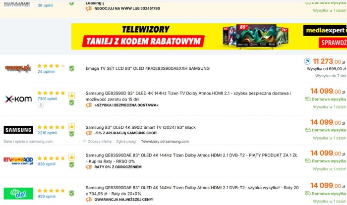 Dodatkowo – darmowa dostawa i zakup w sprawdzonym, renomowanym sklepie. To nie tylko największy OLED w ofercie Samsunga, ale też telewizor, który w tej cenie bije na głowę konkurencję.