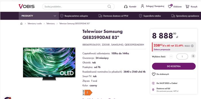 Jeśli marzysz o kinowych wrażeniach w swoim salonie i szukasz telewizora z najwyższej półki, teraz jest idealny moment na zakup. W sklepie Vobis pojawiła się jedna z najlepszych ofert tego miesiąca – telewizor Samsung QE83S90D z ogromnym, 83-calowym ekranem i częstotliwością odświeżania 144 Hz dostępny jest w rewelacyjnej cenie 8 888 zł.
