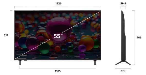 Duży ekran 55” z rozdzielczością 4K Ultra HD (3840 x 2160 px) – zapewnia wyraźny, szczegółowy obraz nawet z większej odległości.