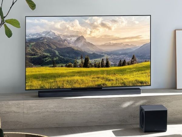 Samsung postawił tutaj na design klasy premium i minimalistyczne rozwiązania, które dobrze komponują się z telewizorami z serii Neo QLED. Soundbar ma również zintegrowane funkcje bezprzewodowe, takie jak AirPlay, Chromecast i Bluetooth, co czyni go świetnym wyborem nie tylko do filmów, ale też do codziennego słuchania muzyki. W zestawie znajduje się również kompaktowy subwoofer, który można wygodnie ustawić w dowolnym miejscu w pokoju.
