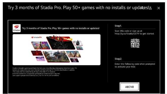 Krok 2. Przy użyciu smartfona zeskanuj kod QR albo zarejestruj się na g.co/stadia/LGTV.